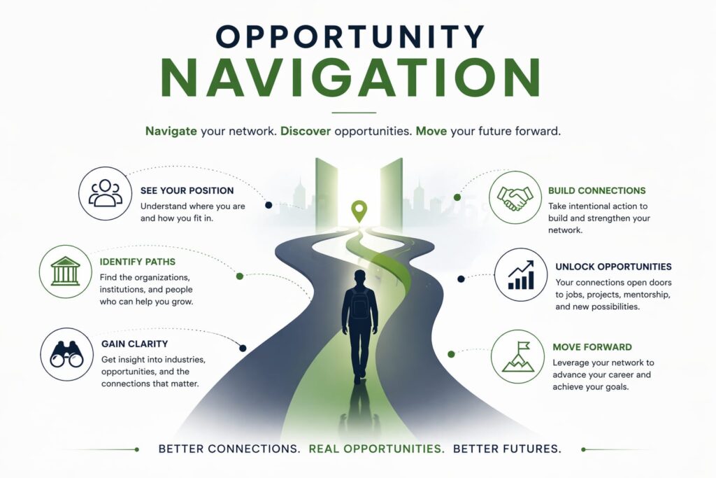 The Opportunity Navigation System helps repair the missing link between people, opportunity, and long term outcomes by giving organizations a practical way to understand, strengthen, and support the connections that matter. It is not just about relationships in general. It is about helping participants navigate access to the people, organizations, and institutions that shape hiring, retention, advancement, and mobility.